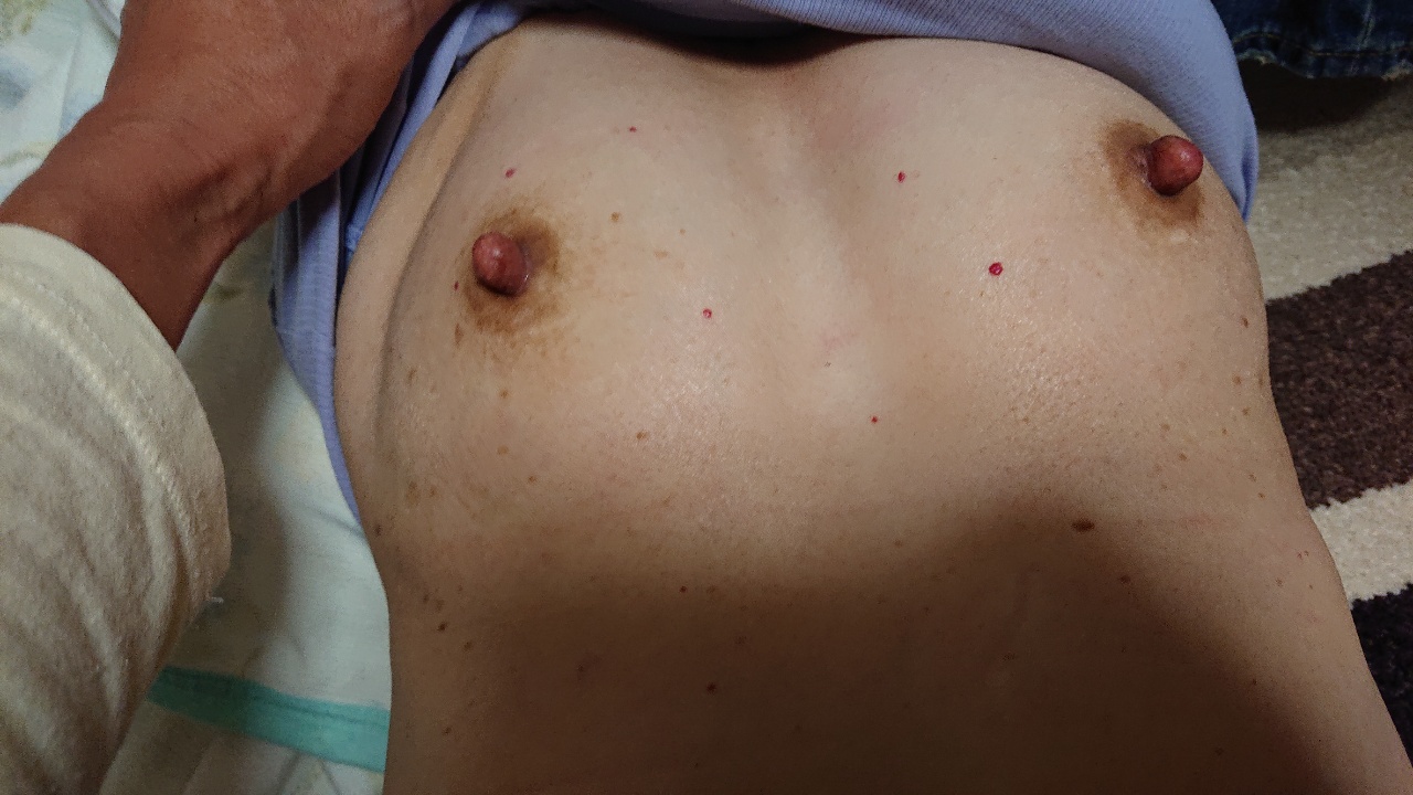乳房は綺麗じゃないけど乳首は綺麗な豆してる